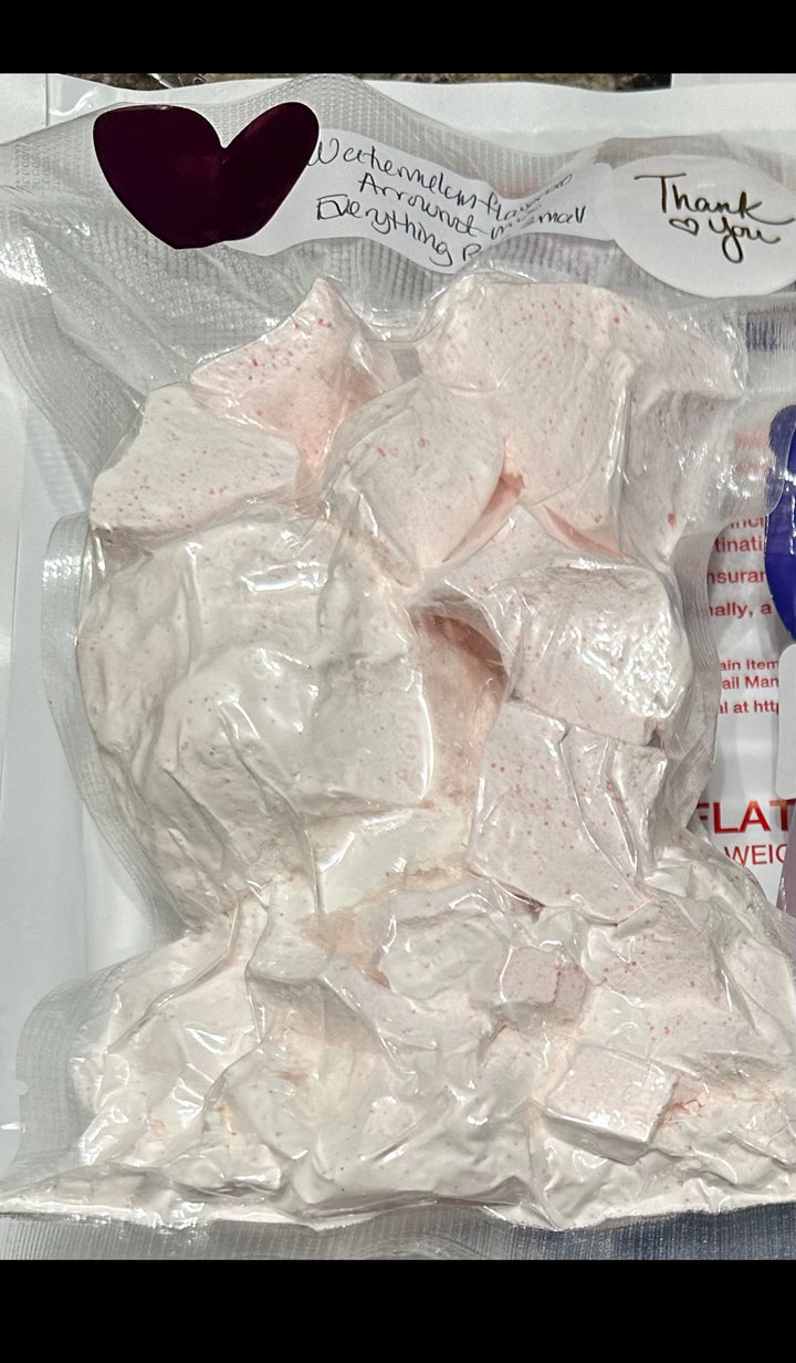 Arrowroot mix specialty blend with watermelon flavor added in a vacuum sealed bag with chunks and crumbles.